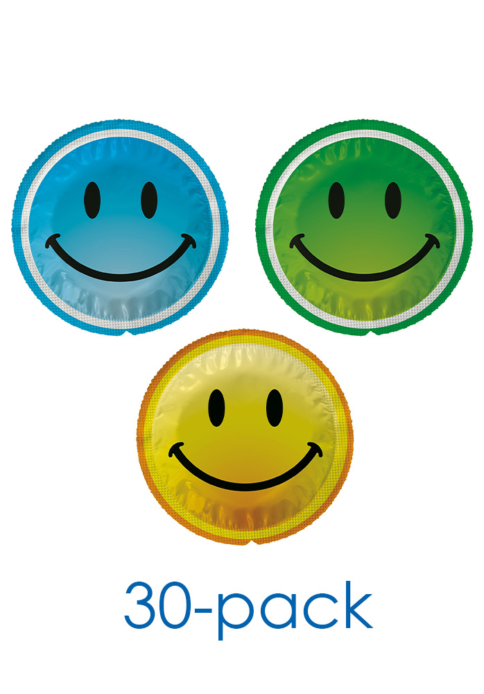 Ge uttryck för dig själv! Med dessa charmiga kondomer som alla förvaras i en rolig och iögonfallande smiley-förpackning är det omöjligt att inte le. Inuti gömmer sig en klassisk kondom i regular storlek som passar utmärkt till de flesta penisarna.