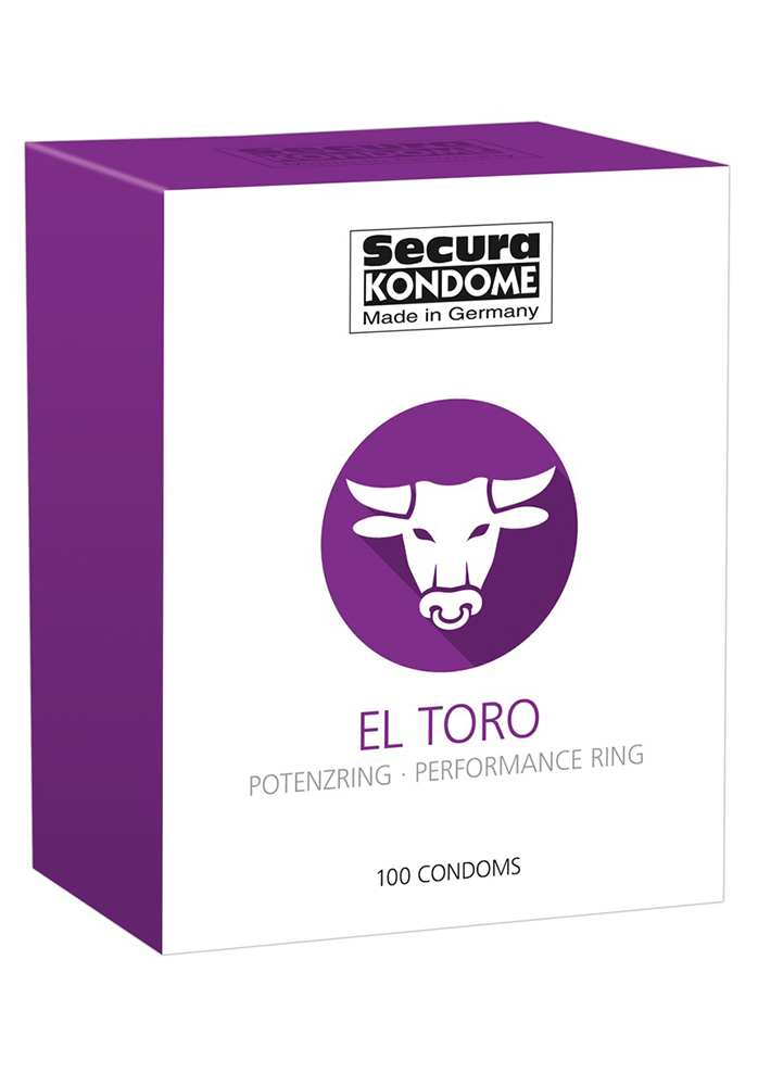 För dig som vill få till lite extra stadga och virlitet finns El Toro! En större förpackning med 100 stycken transparenta, släta kondomer med en mer potensring som hamnar runt om penisroten och ger en liknande effekt som vid användning av en penisring. Kondomerna är behagligt behandlade med glidmedel utvändigt för bästa glid och optimal njutning.