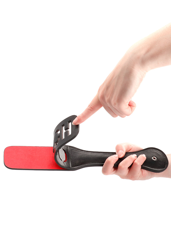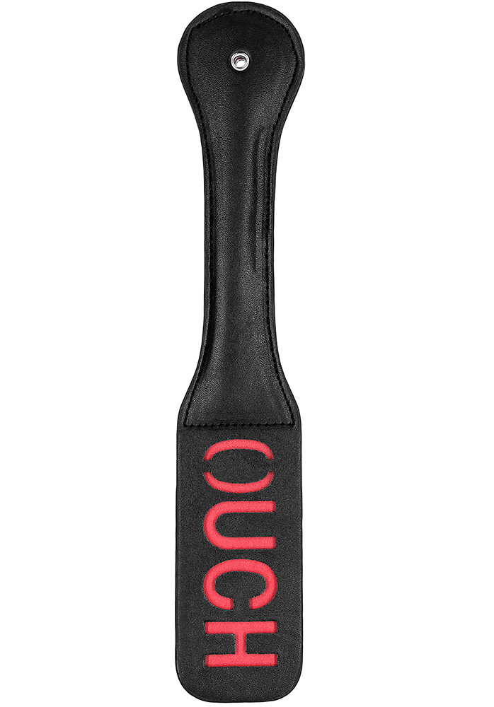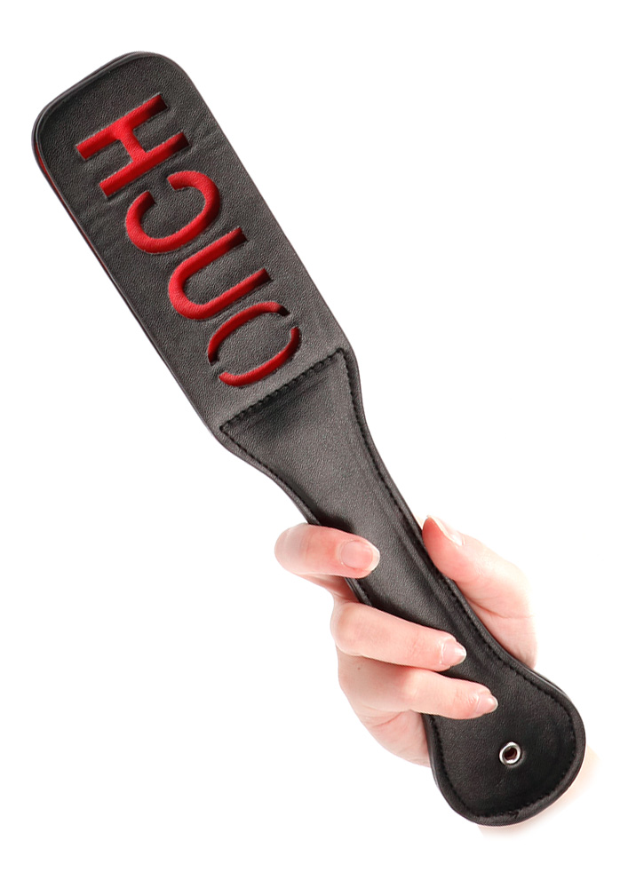 När du vill läxa upp din partner hemma och lämna märken av äganderätt så är denna paddel perfekt! Slår du rakt och intensivt en gång så lämnar inskriptionen ett synligt avtryck med texten; OUCH, på din älskares kropp. Läcker dubbelsidig paddel med stabilt handtag och fångrem att trä om handleden för mer intensiva lekar!