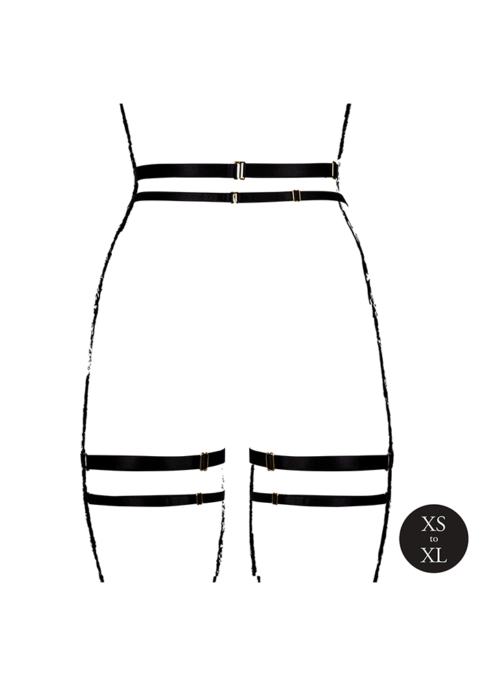 Framhäv din sensualitet med vår exklusiva strumpebandshållare med dubbla band, designad för den sofistikerade kvinnan som förstår förförelsens konst. Tillverkad av lyxigt svart tyg smickrar denna strumpebandshållare din midja och ger en touch av elegans till varje outfit. De tunna dubbla banden skapar en förförisk siluett som framhäver dina former och drar blickarna till sig. Alla band är även försedda med stilrena guldfärgade spännen som låter dig ställa in höfthållaren helt efter din passform. Perfekt för intima kvällar eller speciella tillfällen – detta plagg utstrålar både skönhet och självförtroende!