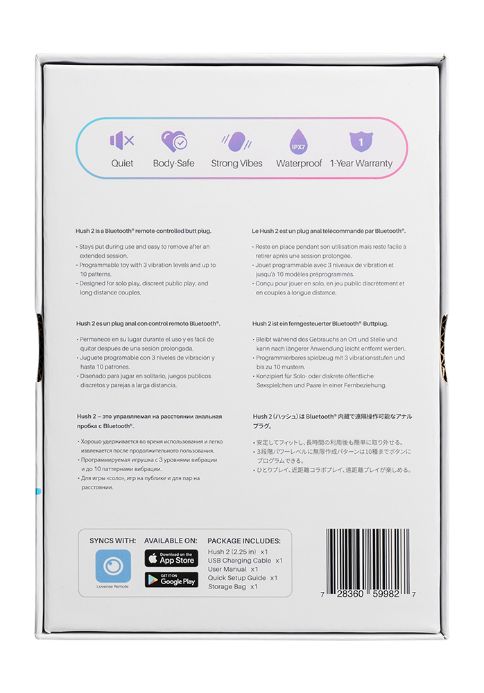 Lovense Hush 2 är ett kraftpaket för anal njutning, med elegant design, avancerad teknik och oändliga variationsmöjligheter. Oavsett om du vill ha njutning i det tysta, låta någon annan ta kontrollen eller utforska nya miljöer – Hush 2 levererar varje gång.