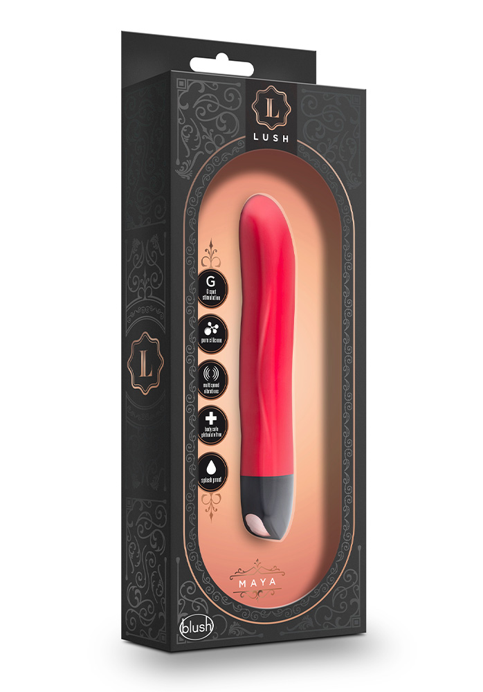 Maya Scarlet är en stilfull lätt vågig massagestav perfekt för både vaginal- och klitorisstimulation. Maya är tillverkad av mjuk och len kroppssäker silikon och skänker dig njutning med sina vibrationer som styrs i 10 olika nivåer. Massagestaven är uppladdningsbar via USB (kabel medföljer) och en laddning ger ca 1 timmes lek. Leksaken är stänkskyddad så du lätt kan blaska av den vid rengöring.