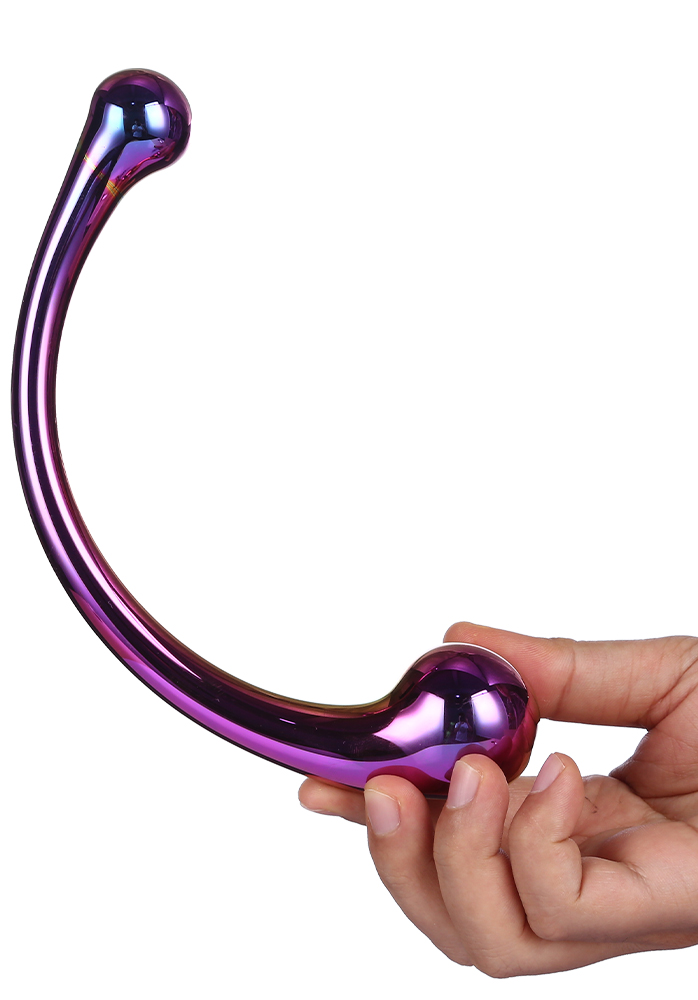 Curved wand är en fiffig leksak gjord i brouillerat glas. Tekniken gör att glaset är riktigt starkt och säkert att föra in i slida eller anal. Staven går i färgen som kallas holographic och glänser i olika färger beroende på hur ljuset träffar den.