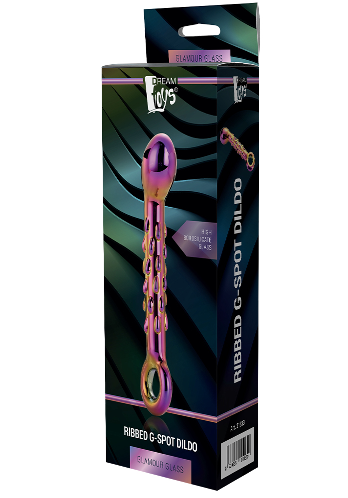 Här har vi en riktigt snygg G-stav gjord i brouillerat glas. Tekniken gör att glaset är riktigt starkt och säkert att föra in i slida eller anal. Staven går i färgen som kallas holographic och glänser i olika färger beroende på hur ljuset träffar den.
