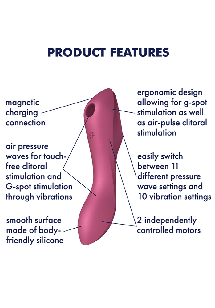 Curvy Trinity 3 är utrustad med två kraftfulla motorer som går att styra var för sig. Leksaken är helt gjuten i silkeslen silikon och ligger skönt i handen.