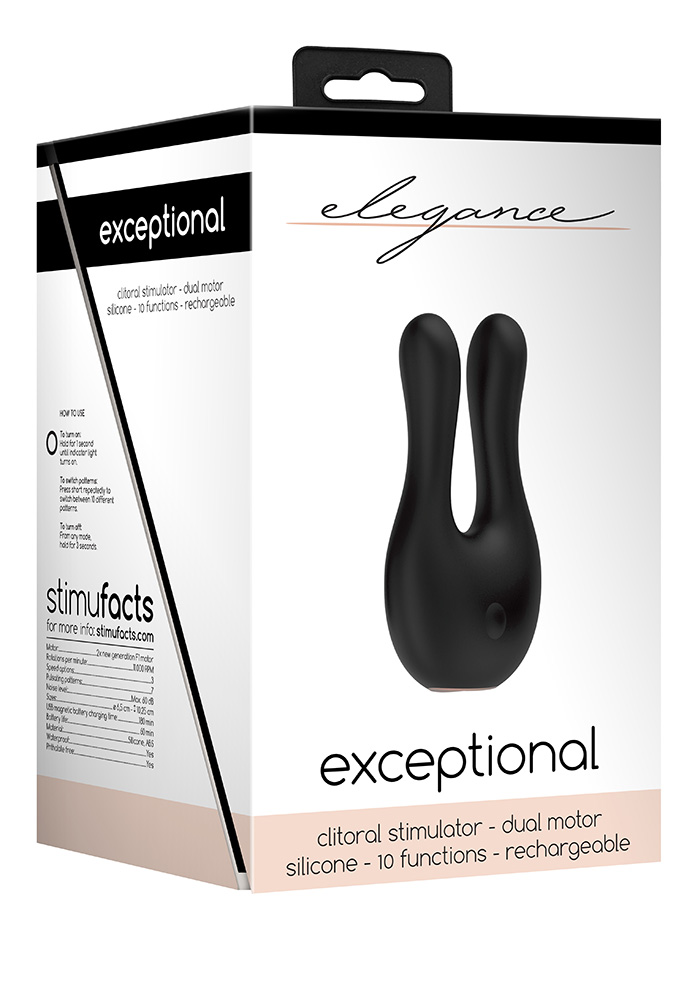 En skön design med två snibbar som stimulerar runt om din klitoris och i övrigt skönt mellan dina ben.. Exceptional styrs av en upplyst, smidig knapp på det greppvänliga handtaget i botten av vibratorn och låter dig enkelt skifta mellan 10 olika frenetiska lägen av kittlande vibrationer...