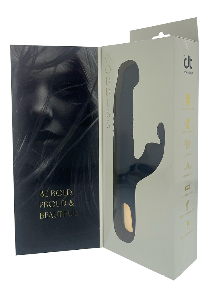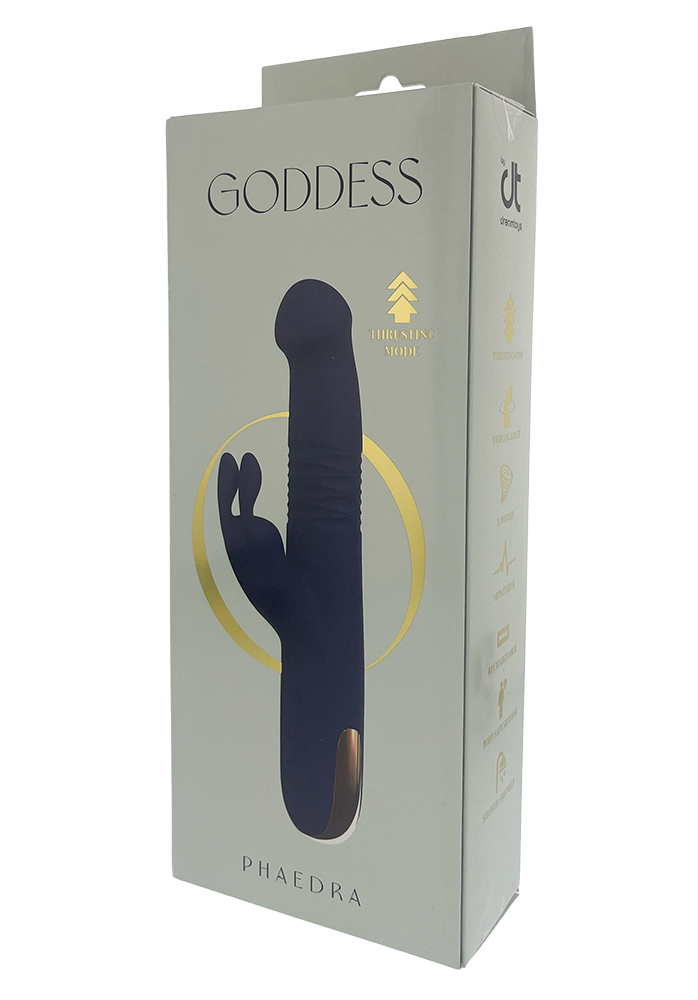 Phaedra är klädd i djupblått kroppssäkert silikon med glänsande gulddetaljer som för tankarna till kunglig prakt. Men det är på insidan hon verkligen regerar. Med 10 upp-och-ner-snurrande rörelser i huvudvibratorn och 7 vibrationsrytmer + 3 hastigheter i klitorisstimulatorn, bjuder hon på en intensiv helkroppsstimulans som bygger upp till klimax i flera dimensioner.