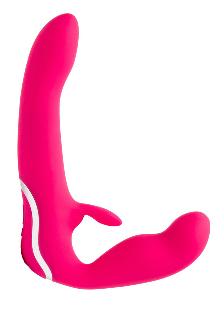 Happy Rabbits Strapless strap-on låter er retas av intensiva vibrationslägen, för båda parter! 12 olika stimulerande lägen går i den smala penetrerande axeln och 3 olika tillfredsställande hastigheter i den kortare delen.